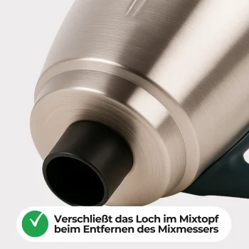 Die Öffnung unter dem Mixbehälter wird sicher verschlossen – nichts läuft mehr aus, nichts bleibt zurück.