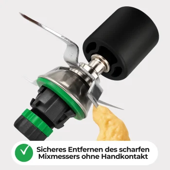 Das Mixmesser kann kontaktfrei entfernt werden – sicherer und hygienischer.
